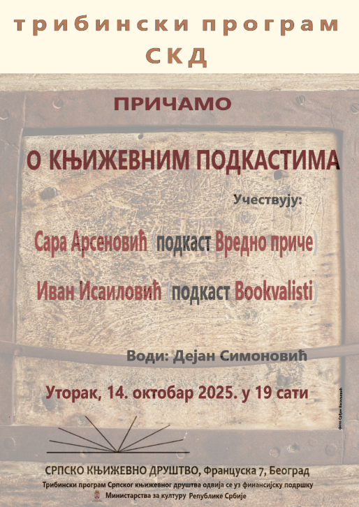 Прво желим да захвалим жирију зато што је одабрао моју збирку приповедака. Такође, захваљујем Српском књижевном друштву, које је установило ову награду, као и вама зато што сте дошли вечерас.